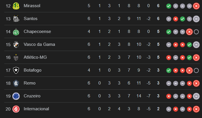 Com o resultado em Belo Horizonte, o time comandado por Paulo Pezzolano permaneceu com apenas dois pontos após seis rodadas. O Cruzeiro, dirigido por Tite, chegou a três e ultrapassou os gaúchos. Já o Vasco, treinado por Renato Portaluppi, somou mais um ponto na tabela. Se os cariocas tivessem vencido, o Inter ainda escaparia da lanterna — mas o empate acabou sendo o pior cenário possível para o clube gaúcho.