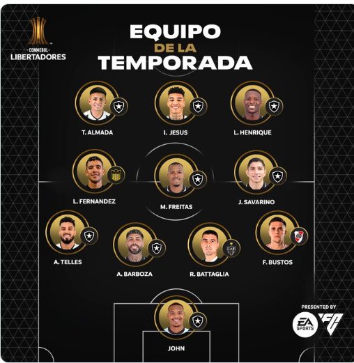 Entre os jogadores escolhidos, o goleiro John , atualmente defendendo o Botafogo, foi eleito o melhor da disputa em sua posição. Com grandes defesas ao longo do torneio, John garantiu o título conquistado para a equipe carioca, e seu desempenho chamou a atenção de torcedores e críticos. Antes de brilhar na Libertadores, ele passou pelo Internacional , onde deixou uma boa impressão.