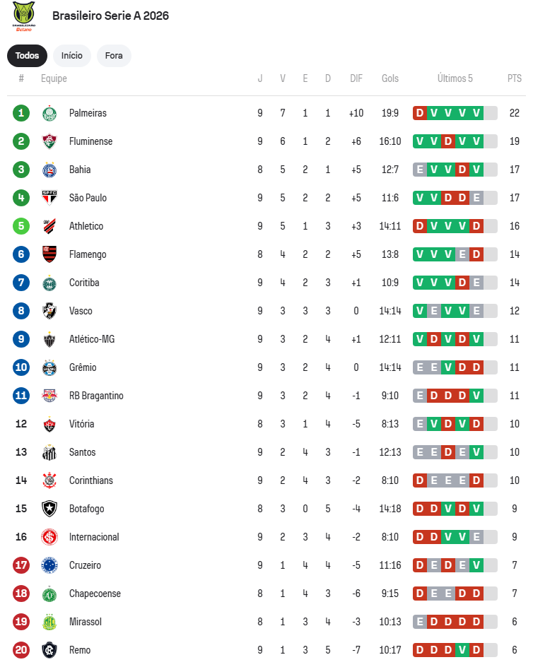 Com a rodada encerrada, o Internacional vê a margem para erro diminuir. O time comandado por Paulo Pezzolano agora precisa reagir rapidamente para não deixar a distância crescer. O Brasileirão é longo, mas o sinal de alerta já está aceso no Beira-Rio.