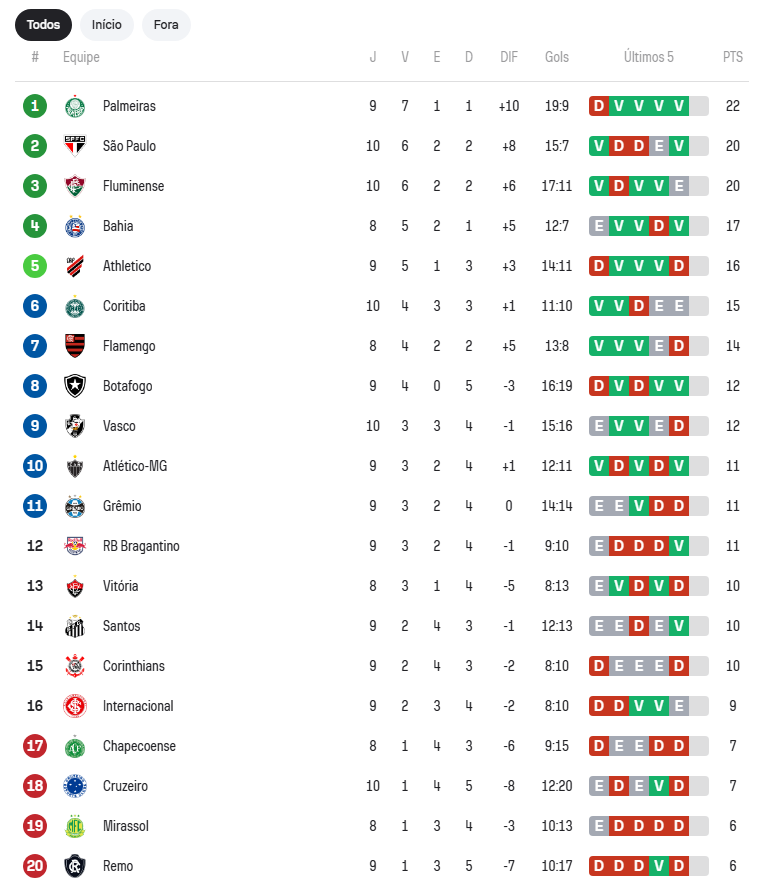 Mesmo sem ainda ter pisado no gramado, o Inter já começou a sentir os efeitos da 10ª rodada do Brasileirão. Na noite deste sábado (4), três partidas agitaram a tabela e abriram brechas importantes. Para o time de Paulo Pezzolano, o cenário que se desenha pode ser mais favorável do que parecia à primeira vista.
